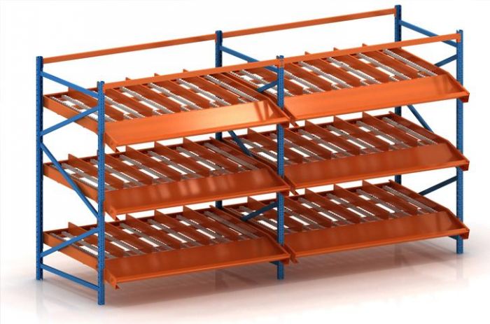流利條貨架又稱先進先出貨架、滑移式貨架,簡稱流利架,是流利條滑軌等連接件組裝構成的一種可拆卸的貨架。